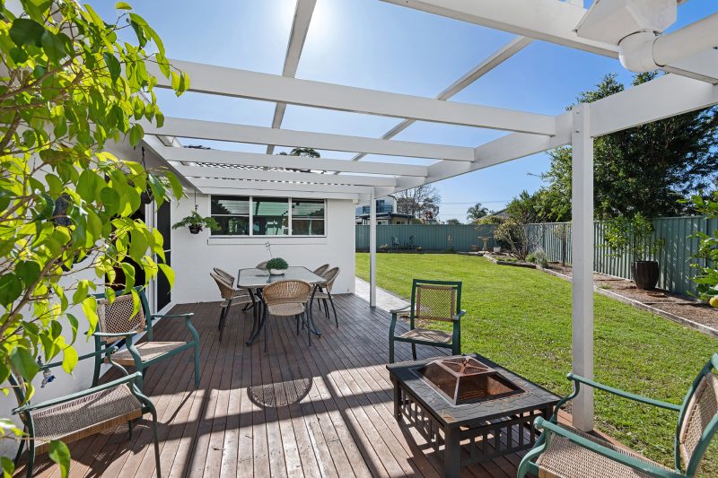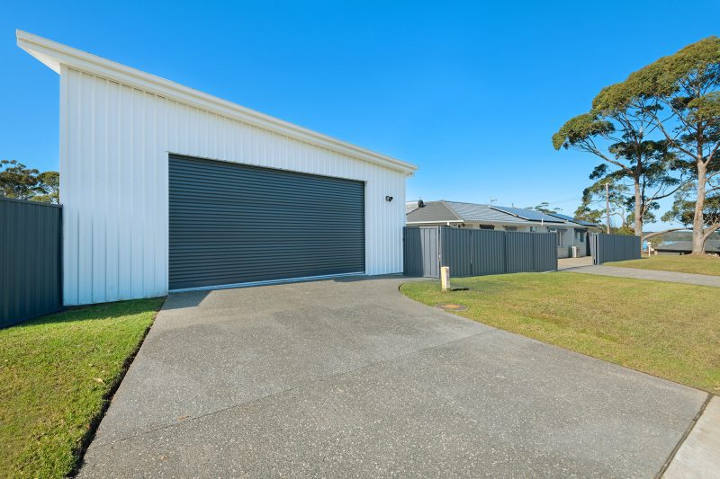 Huge custom-built garage designed to maximise storage space with handy drive through access to the back yard. An automatic sliding side gate allows for convenient and secure off-street parking for the boat, caravan & trailer.